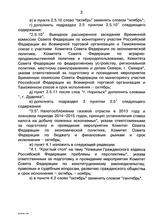 "О ВНЕСЕНИИ ИЗМЕНЕНИЙ В ПЛАН МЕРОПРИЯТИЙ СОВЕТА ФЕДЕРАЦИИ ФЕДЕРАЛЬНОГО СОБРАНИЯ РОССИЙСКОЙ ФЕДЕРАЦИИ НА ОСЕННЮЮ СЕССИЮ 2012 ГОДА"