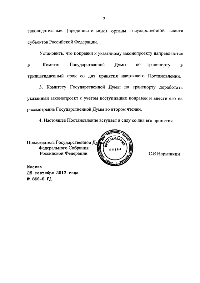 ПОСТАНОВЛЕНИЕ ГД ФС РФ от 25.09.2012 N 860-6 ГД