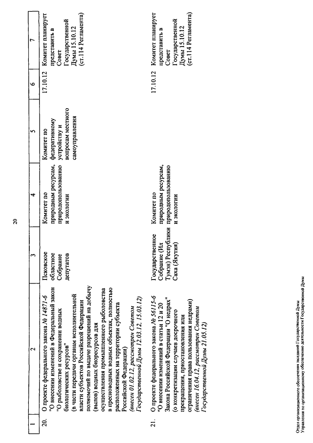 "О КАЛЕНДАРЕ РАССМОТРЕНИЯ ВОПРОСОВ ГОСУДАРСТВЕННОЙ ДУМОЙ С 16 ПО 26 ОКТЯБРЯ 2012 ГОДА"
