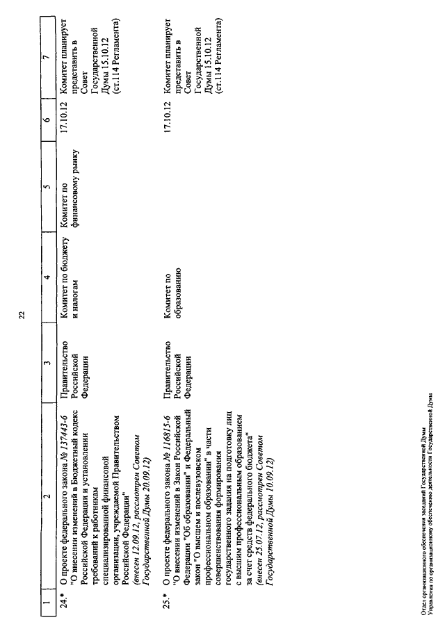"О КАЛЕНДАРЕ РАССМОТРЕНИЯ ВОПРОСОВ ГОСУДАРСТВЕННОЙ ДУМОЙ С 16 ПО 26 ОКТЯБРЯ 2012 ГОДА"