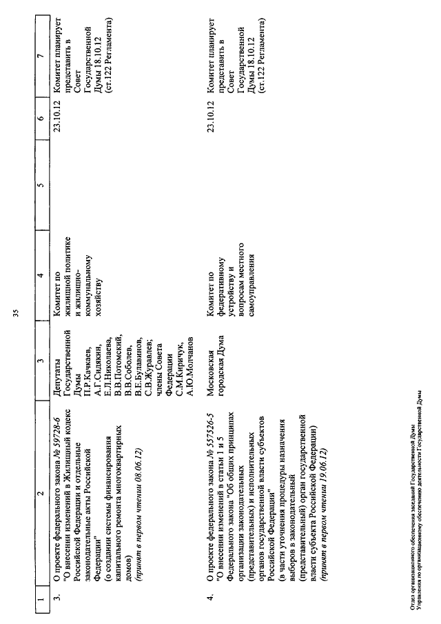 "О КАЛЕНДАРЕ РАССМОТРЕНИЯ ВОПРОСОВ ГОСУДАРСТВЕННОЙ ДУМОЙ С 16 ПО 26 ОКТЯБРЯ 2012 ГОДА"