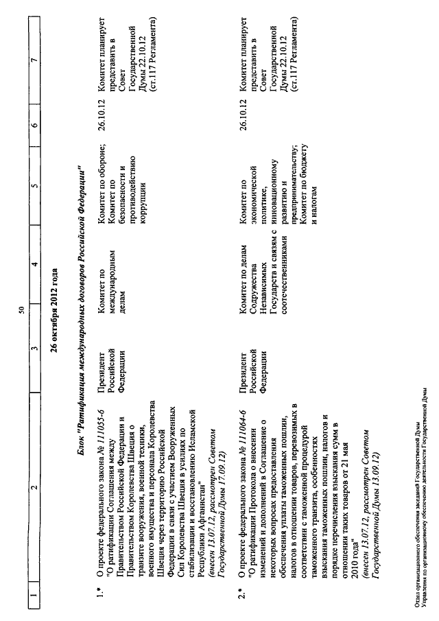 "О КАЛЕНДАРЕ РАССМОТРЕНИЯ ВОПРОСОВ ГОСУДАРСТВЕННОЙ ДУМОЙ С 16 ПО 26 ОКТЯБРЯ 2012 ГОДА"