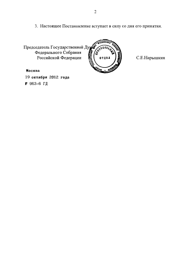 ПОСТАНОВЛЕНИЕ ГД ФС РФ от 19.10.2012 N 963-6 ГД