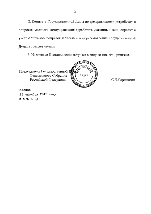 ПОСТАНОВЛЕНИЕ ГД ФС РФ от 23.10.2012 N 976-6 ГД
