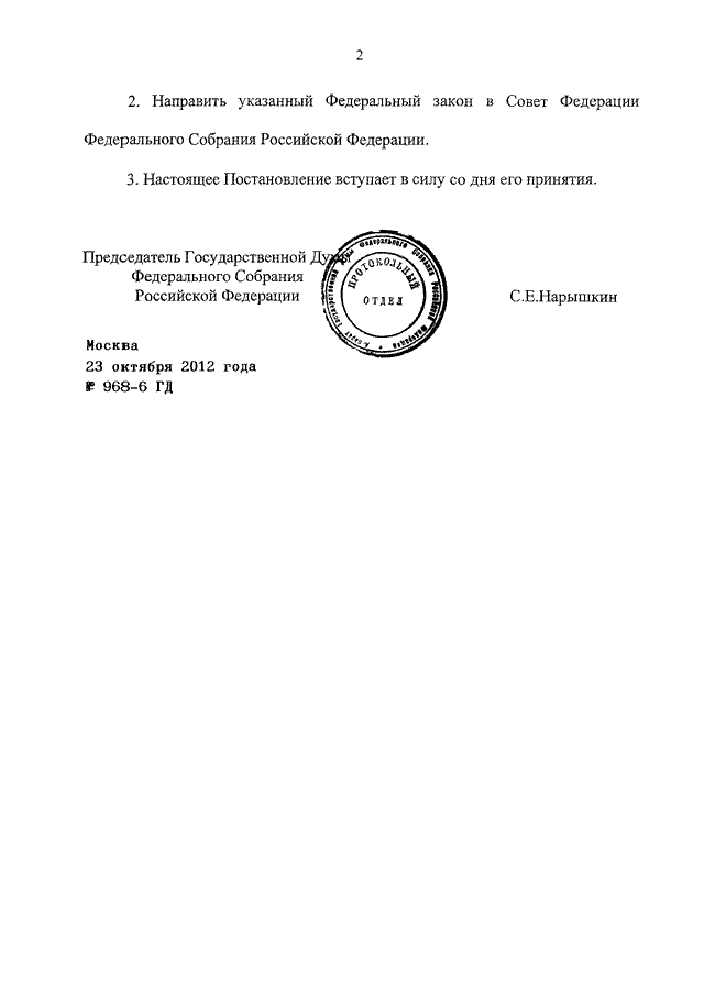 ПОСТАНОВЛЕНИЕ ГД ФС РФ от 23.10.2012 N 968-6 ГД