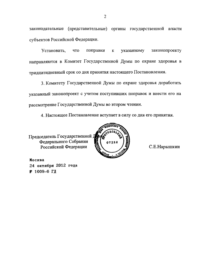 ПОСТАНОВЛЕНИЕ ГД ФС РФ от 24.10.2012 N 1009-6 ГД