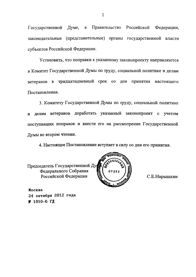 ПОСТАНОВЛЕНИЕ ГД ФС РФ от 24.10.2012 N 1010-6 ГД