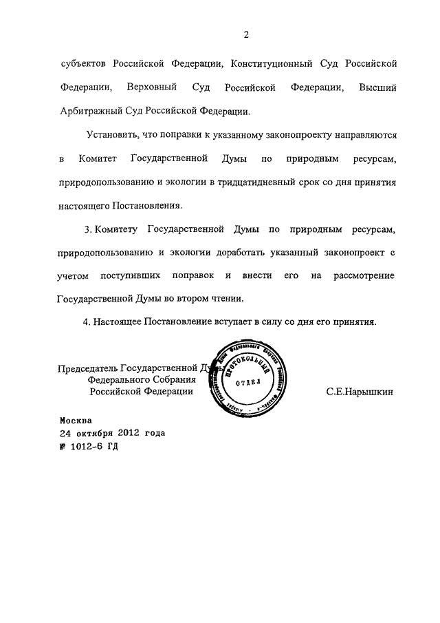 ПОСТАНОВЛЕНИЕ ГД ФС РФ от 24.10.2012 N 1012-6 ГД
