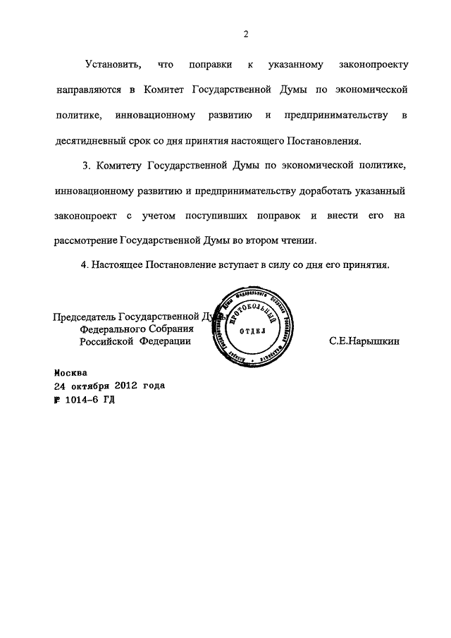 ПОСТАНОВЛЕНИЕ ГД ФС РФ от 24.10.2012 N 1014-6 ГД