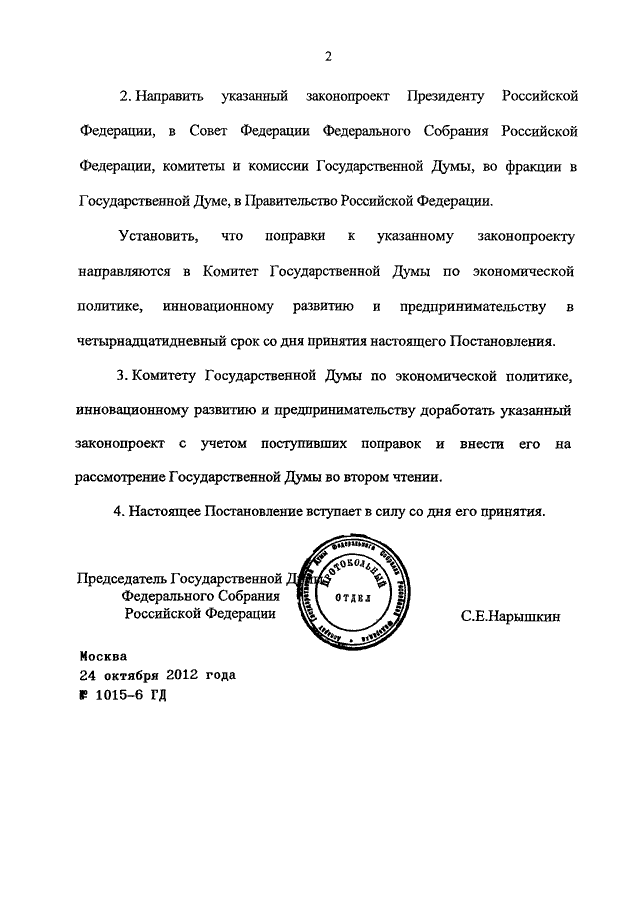 ПОСТАНОВЛЕНИЕ ГД ФС РФ от 24.10.2012 N 1015-6 ГД