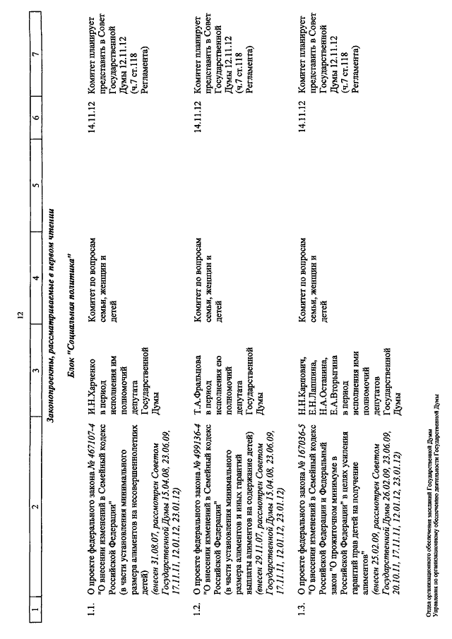"О КАЛЕНДАРЕ РАССМОТРЕНИЯ ВОПРОСОВ ГОСУДАРСТВЕННОЙ ДУМОЙ С 13 ПО 23 НОЯБРЯ 2012 ГОДА"