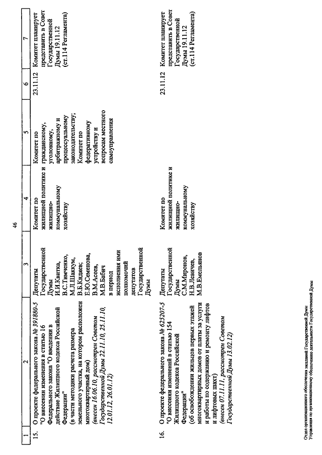 "О КАЛЕНДАРЕ РАССМОТРЕНИЯ ВОПРОСОВ ГОСУДАРСТВЕННОЙ ДУМОЙ С 13 ПО 23 НОЯБРЯ 2012 ГОДА"