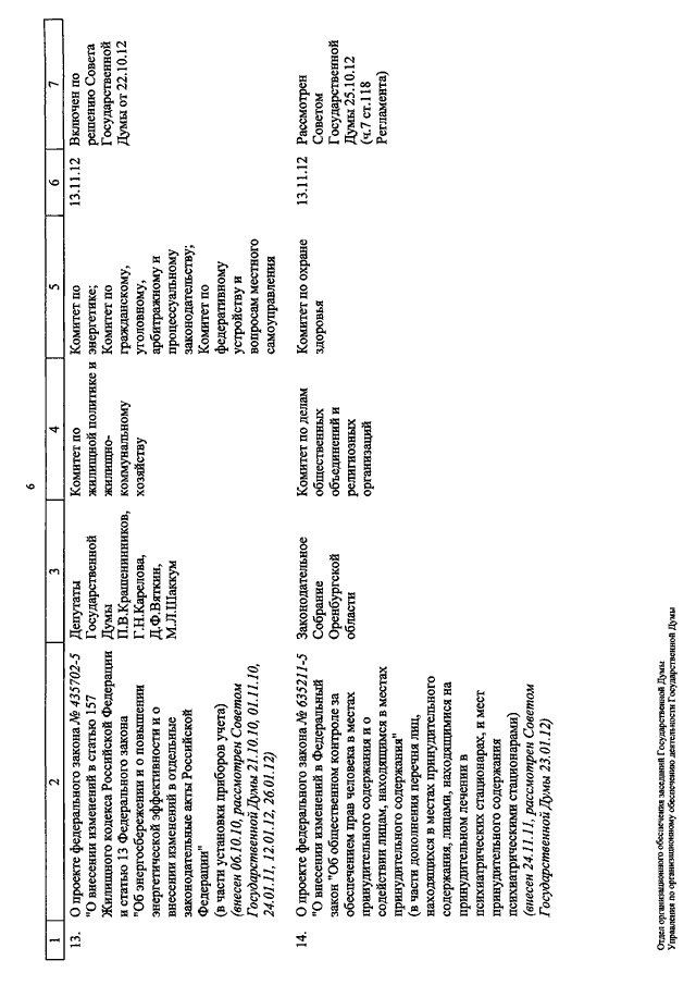 "О КАЛЕНДАРЕ РАССМОТРЕНИЯ ВОПРОСОВ ГОСУДАРСТВЕННОЙ ДУМОЙ С 13 ПО 23 НОЯБРЯ 2012 ГОДА"
