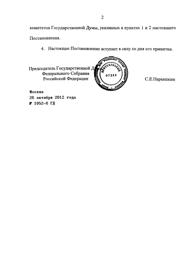 ПОСТАНОВЛЕНИЕ ГД ФС РФ от 26.10.2012 N 1052-6 ГД