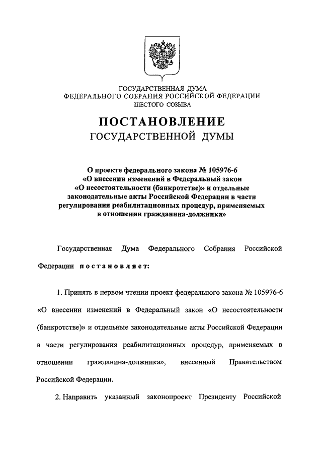"О ПРОЕКТЕ ФЕДЕРАЛЬНОГО ЗАКОНА N 105976-6 "О ВНЕСЕНИИ ИЗМЕНЕНИЙ В
