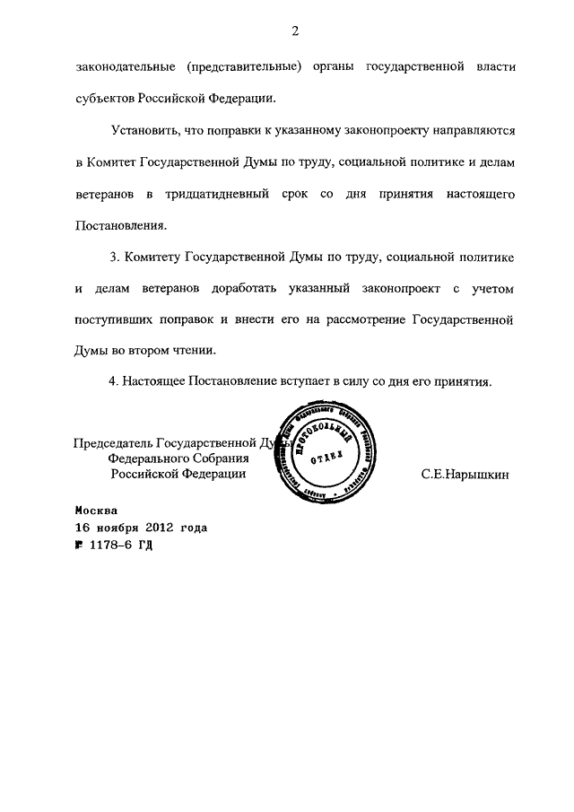 ПОСТАНОВЛЕНИЕ ГД ФС РФ от 16.11.2012 N 1178-6 ГД