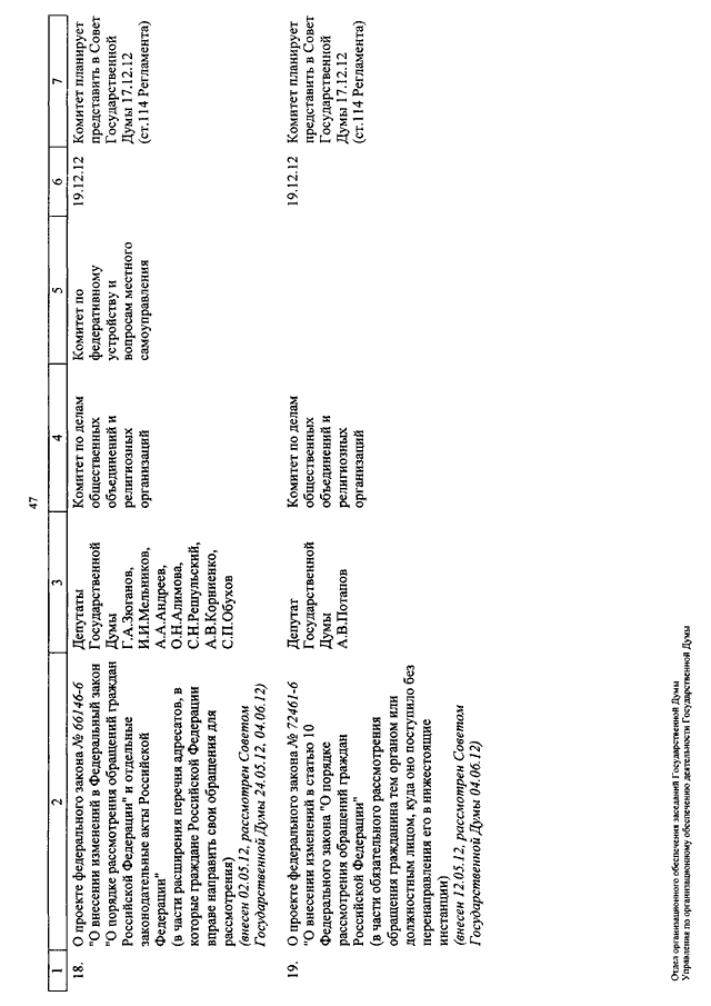 "О КАЛЕНДАРЕ РАССМОТРЕНИЯ ВОПРОСОВ ГОСУДАРСТВЕННОЙ ДУМОЙ С 11 ПО 21 ДЕКАБРЯ 2012 ГОДА"