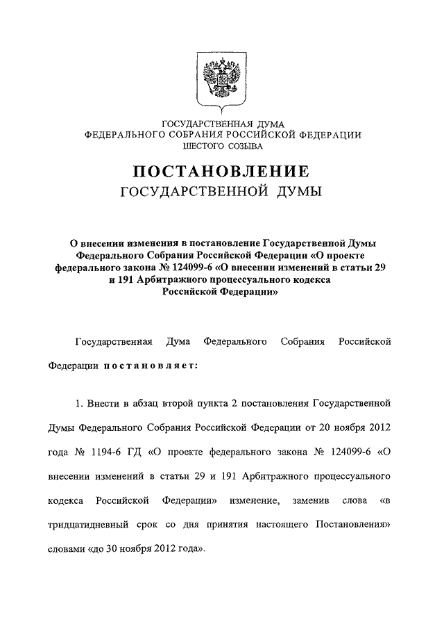 ПОСТАНОВЛЕНИЕ ГД ФС РФ от 23.11.2012 N 1245-6 ГД