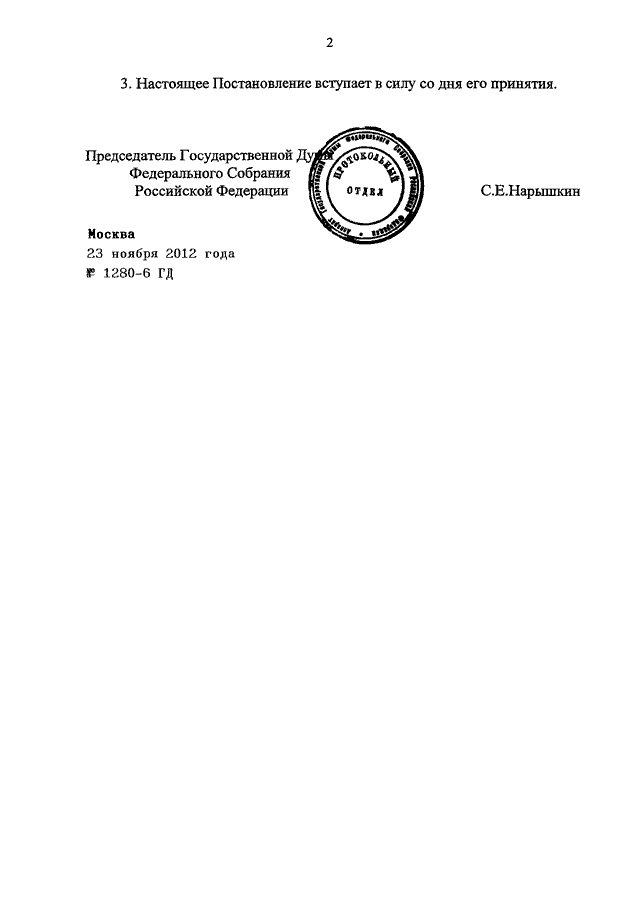 ПОСТАНОВЛЕНИЕ ГД ФС РФ от 23.11.2012 N 1280-6 ГД