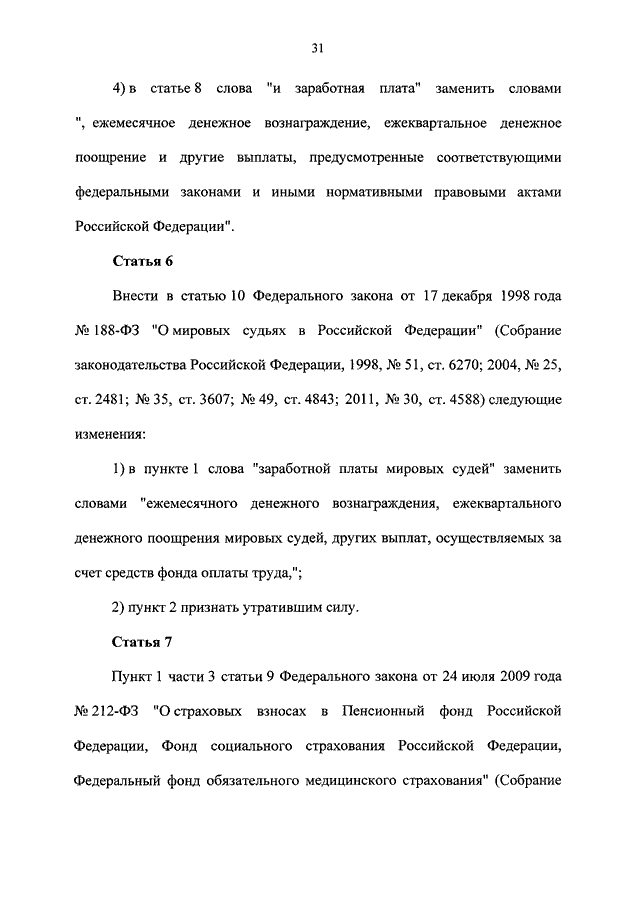 "О ВНЕСЕНИИ ИЗМЕНЕНИЙ В ОТДЕЛЬНЫЕ ЗАКОНОДАТЕЛЬНЫЕ АКТЫ РОССИЙСКОЙ ФЕДЕРАЦИИ В ЧАСТИ СОВЕРШЕНСТВОВАНИЯ СИСТЕМЫ ОПЛАТЫ ТРУДА СУДЕЙ РОССИЙСКОЙ ФЕДЕРАЦИИ, А ТАКЖЕ ПРИЗНАНИИ УТРАТИВШИМИ СИЛУ ОТДЕЛЬНЫХ ЗАКОНОДАТЕЛЬНЫХ АКТОВ (ПОЛОЖЕНИЙ ЗАКОНОДАТЕЛЬНЫХ АКТОВ) РОССИЙСКОЙ ФЕДЕРАЦИИ"