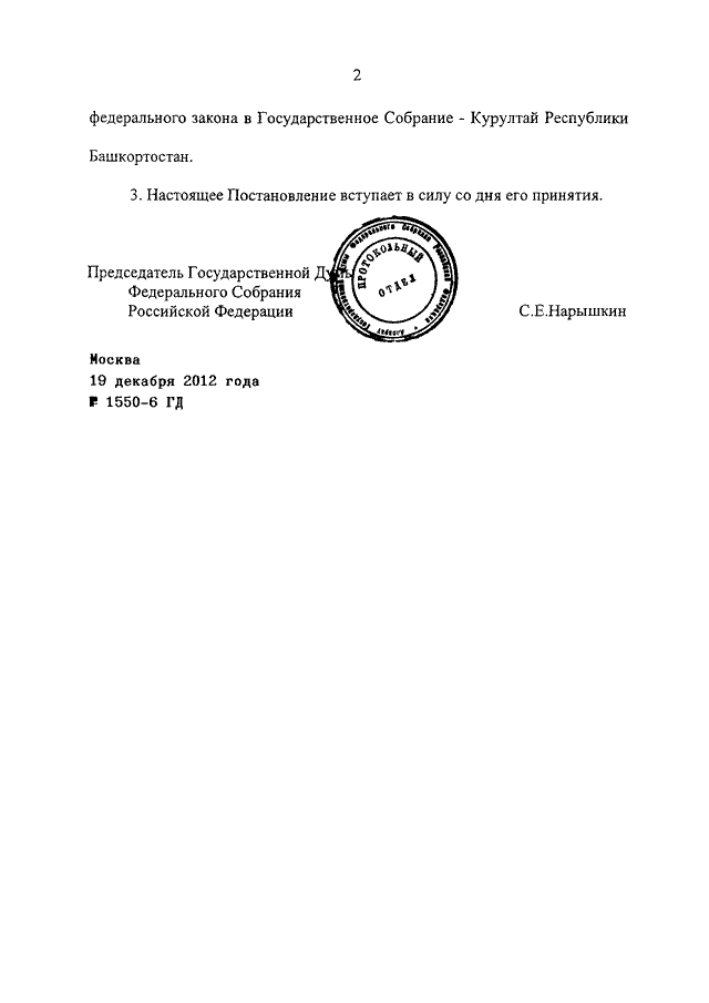 ПОСТАНОВЛЕНИЕ ГД ФС РФ от 19.12.2012 N 1550-6 ГД