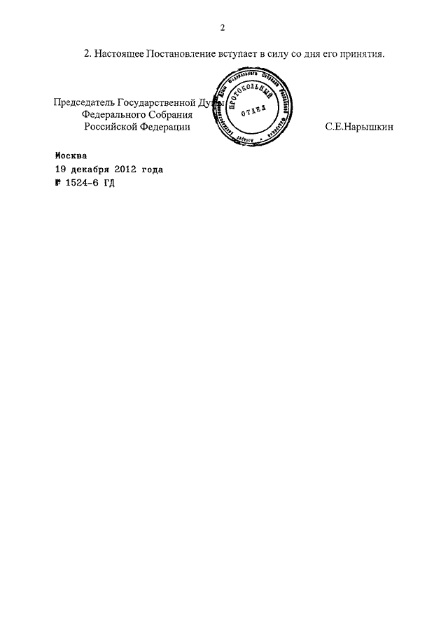 ПОСТАНОВЛЕНИЕ ГД ФС РФ от 19.12.2012 N 1524-6 ГД