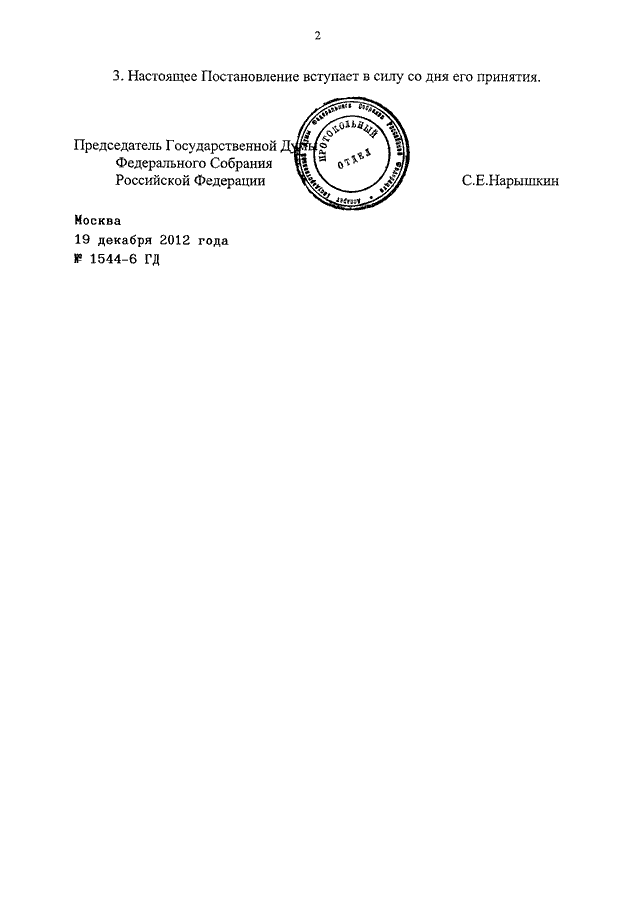 ПОСТАНОВЛЕНИЕ ГД ФС РФ от 19.12.2012 N 1544-6 ГД