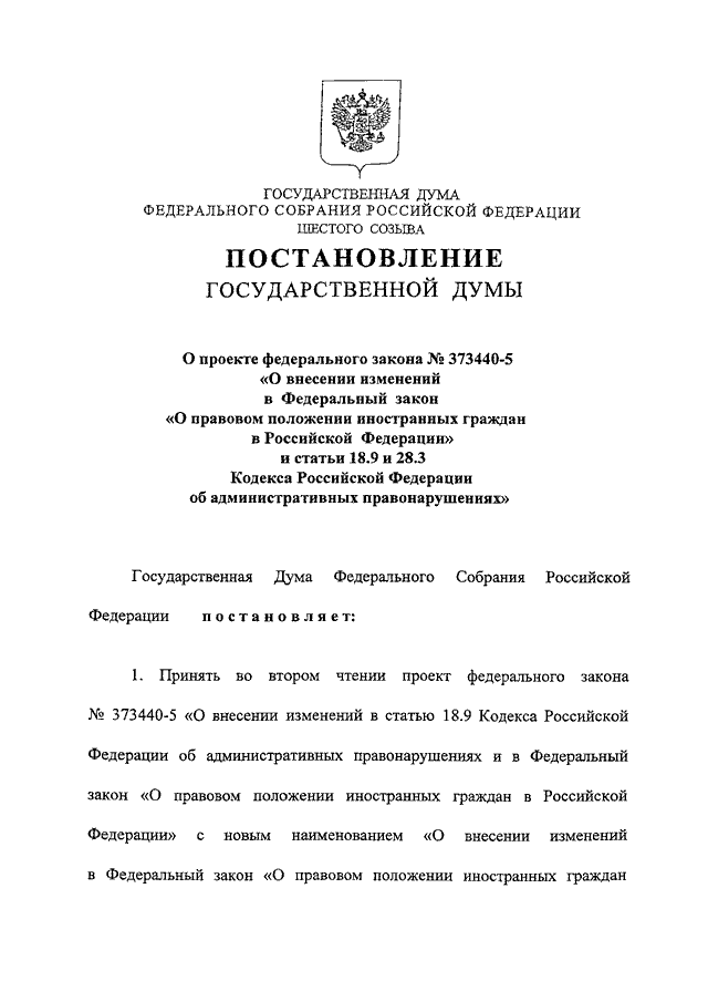 "О ПРОЕКТЕ ФЕДЕРАЛЬНОГО ЗАКОНА N 373440-5 "О ВНЕСЕНИИ ИЗМЕНЕНИЙ В