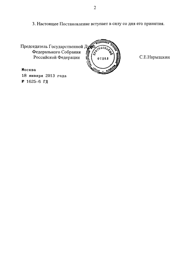 ПОСТАНОВЛЕНИЕ ГД ФС РФ от 18.01.2013 N 1625-6 ГД