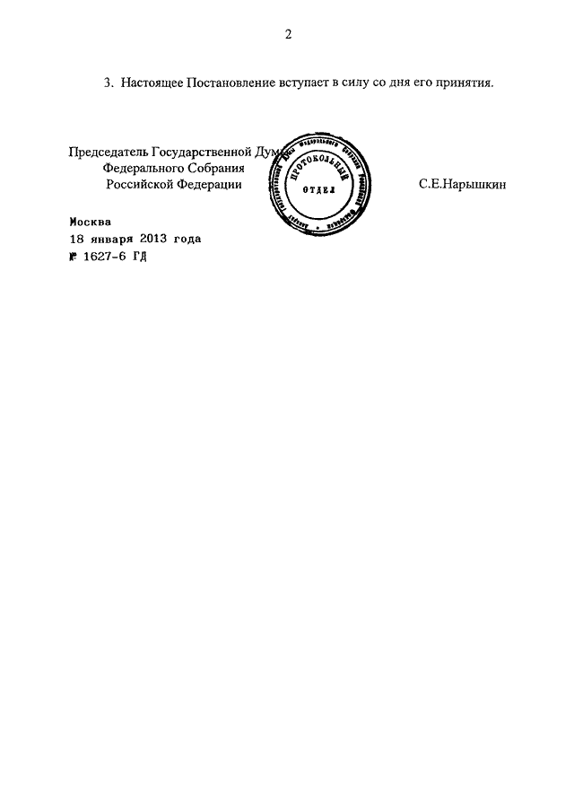 ПОСТАНОВЛЕНИЕ ГД ФС РФ от 18.01.2013 N 1627-6 ГД