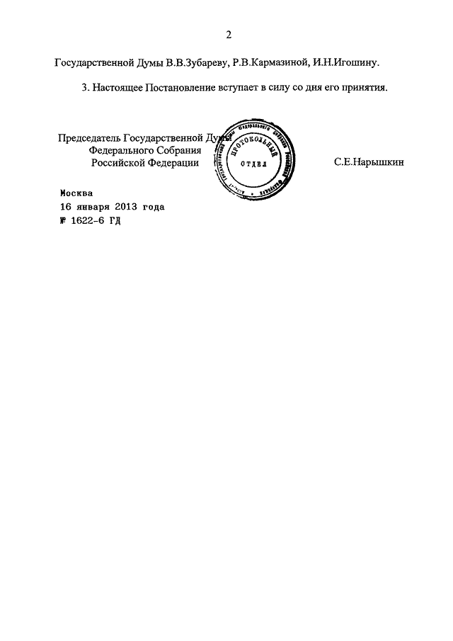 ПОСТАНОВЛЕНИЕ ГД ФС РФ от 16.01.2013 N 1622-6 ГД