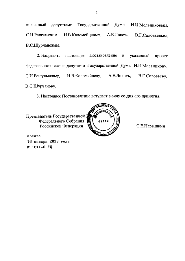 ПОСТАНОВЛЕНИЕ ГД ФС РФ от 16.01.2013 N 1611-6 ГД