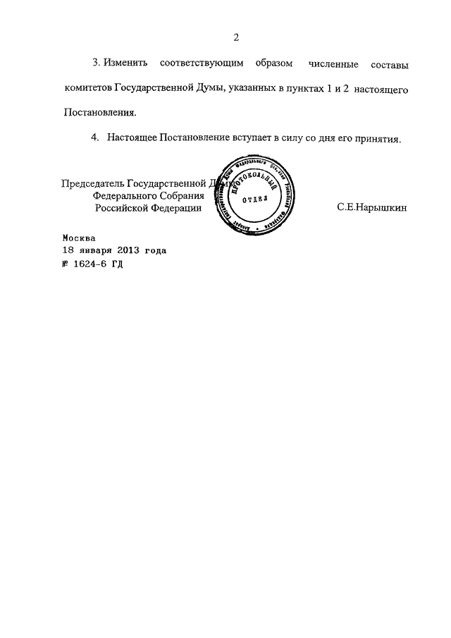 ПОСТАНОВЛЕНИЕ ГД ФС РФ от 18.01.2013 N 1624-6 ГД