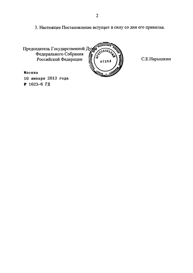 ПОСТАНОВЛЕНИЕ ГД ФС РФ от 16.01.2013 N 1623-6 ГД