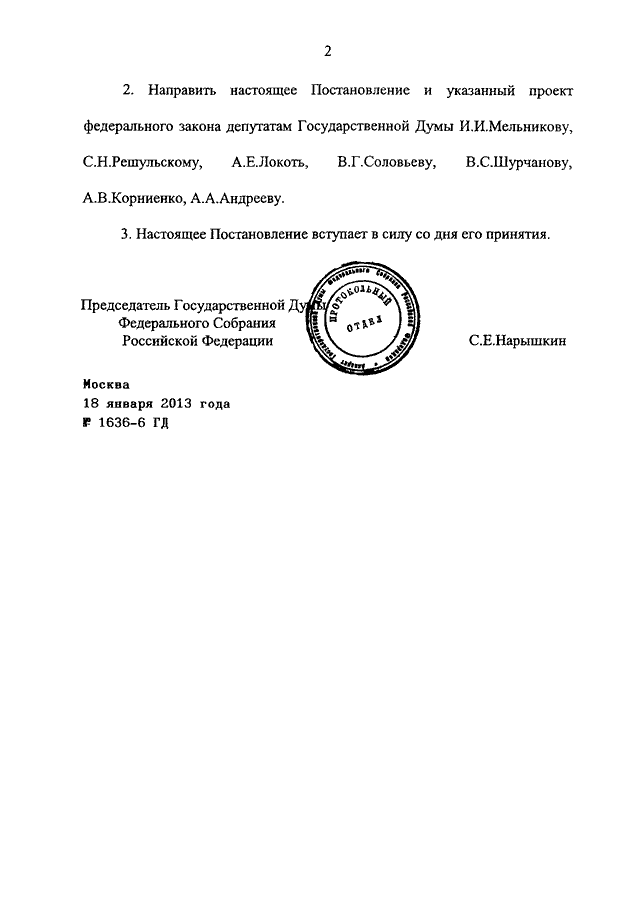ПОСТАНОВЛЕНИЕ ГД ФС РФ от 18.01.2013 N 1636-6 ГД