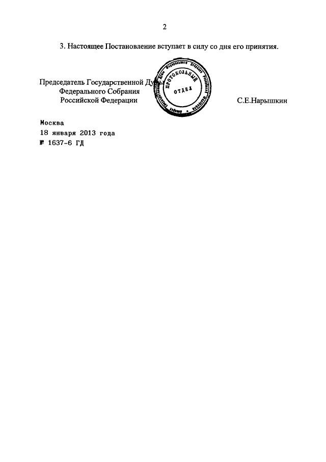 ПОСТАНОВЛЕНИЕ ГД ФС РФ от 18.01.2013 N 1637-6 ГД