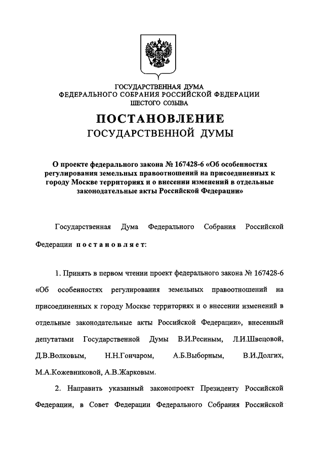 "О ПРОЕКТЕ ФЕДЕРАЛЬНОГО ЗАКОНА N 167428-6 "ОБ ОСОБЕННОСТЯХ