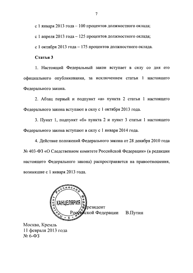 ФЕДЕРАЛЬНЫЙ ЗАКОН от 11.02.2013 N 6-ФЗ