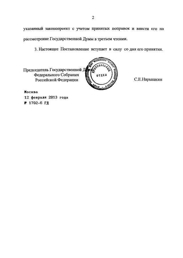 ПОСТАНОВЛЕНИЕ ГД ФС РФ от 12.02.2013 N 1702-6 ГД