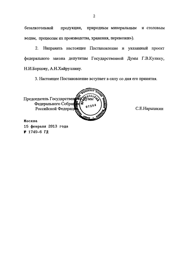 ПОСТАНОВЛЕНИЕ ГД ФС РФ от 15.02.2013 N 1749-6 ГД