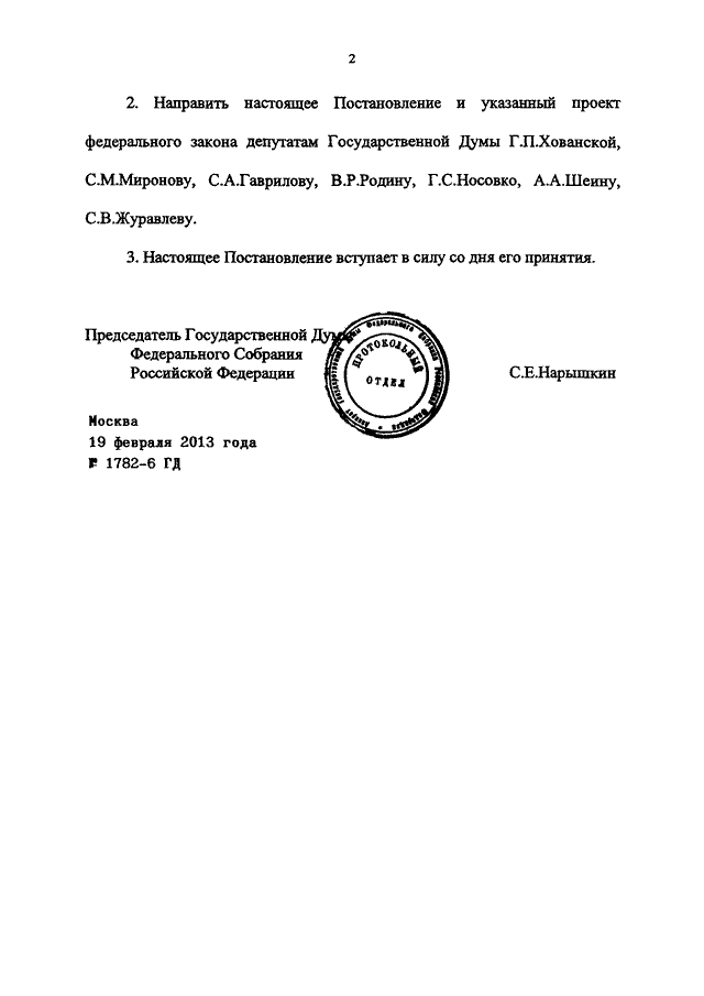 ПОСТАНОВЛЕНИЕ ГД ФС РФ от 19.02.2013 N 1782-6 ГД