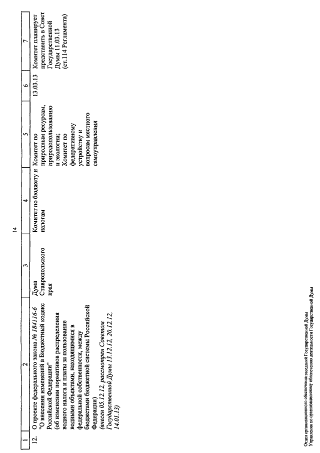 "О КАЛЕНДАРЕ РАССМОТРЕНИЯ ВОПРОСОВ ГОСУДАРСТВЕННОЙ ДУМОЙ С 12 ПО 22 МАРТА 2013 ГОДА"