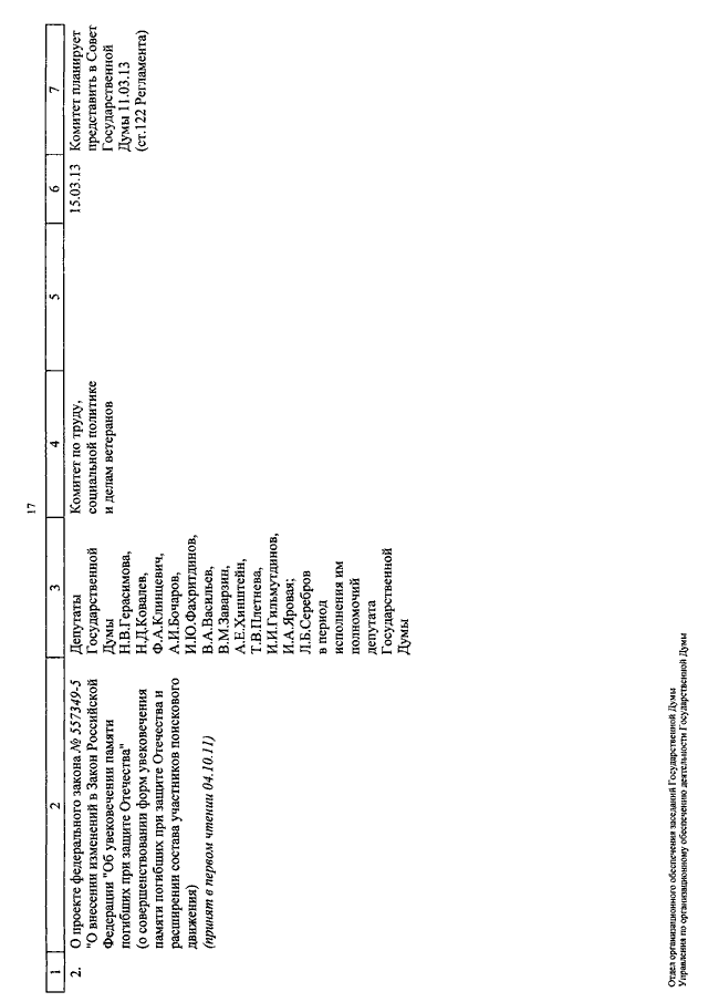 "О КАЛЕНДАРЕ РАССМОТРЕНИЯ ВОПРОСОВ ГОСУДАРСТВЕННОЙ ДУМОЙ С 12 ПО 22 МАРТА 2013 ГОДА"