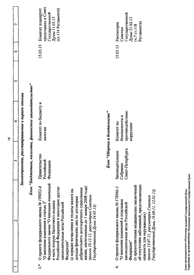 "О КАЛЕНДАРЕ РАССМОТРЕНИЯ ВОПРОСОВ ГОСУДАРСТВЕННОЙ ДУМОЙ С 12 ПО 22 МАРТА 2013 ГОДА"
