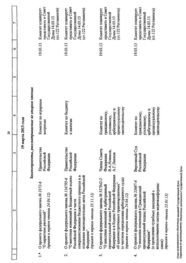 "О КАЛЕНДАРЕ РАССМОТРЕНИЯ ВОПРОСОВ ГОСУДАРСТВЕННОЙ ДУМОЙ С 12 ПО 22 МАРТА 2013 ГОДА"