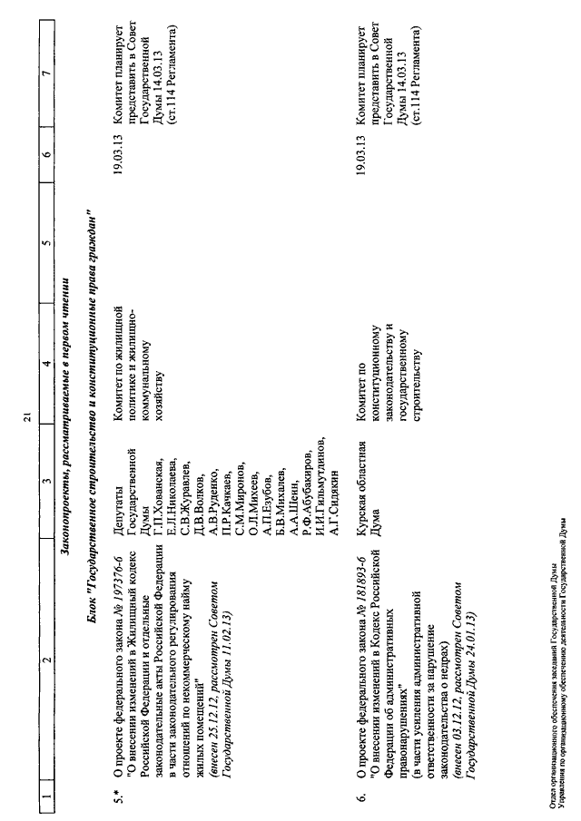 "О КАЛЕНДАРЕ РАССМОТРЕНИЯ ВОПРОСОВ ГОСУДАРСТВЕННОЙ ДУМОЙ С 12 ПО 22 МАРТА 2013 ГОДА"