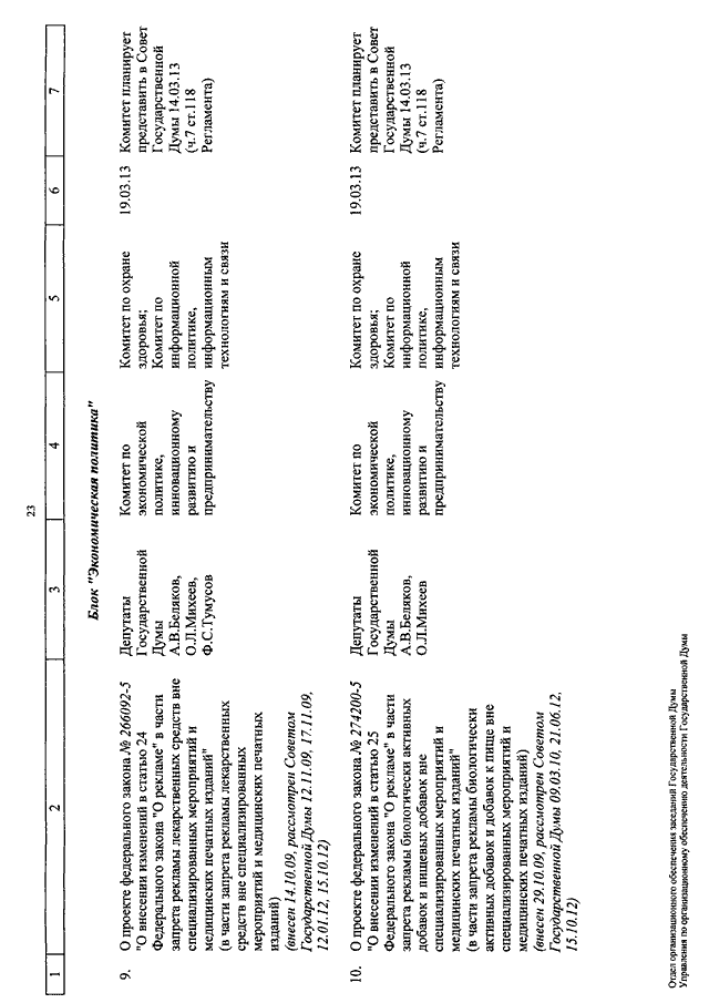 "О КАЛЕНДАРЕ РАССМОТРЕНИЯ ВОПРОСОВ ГОСУДАРСТВЕННОЙ ДУМОЙ С 12 ПО 22 МАРТА 2013 ГОДА"