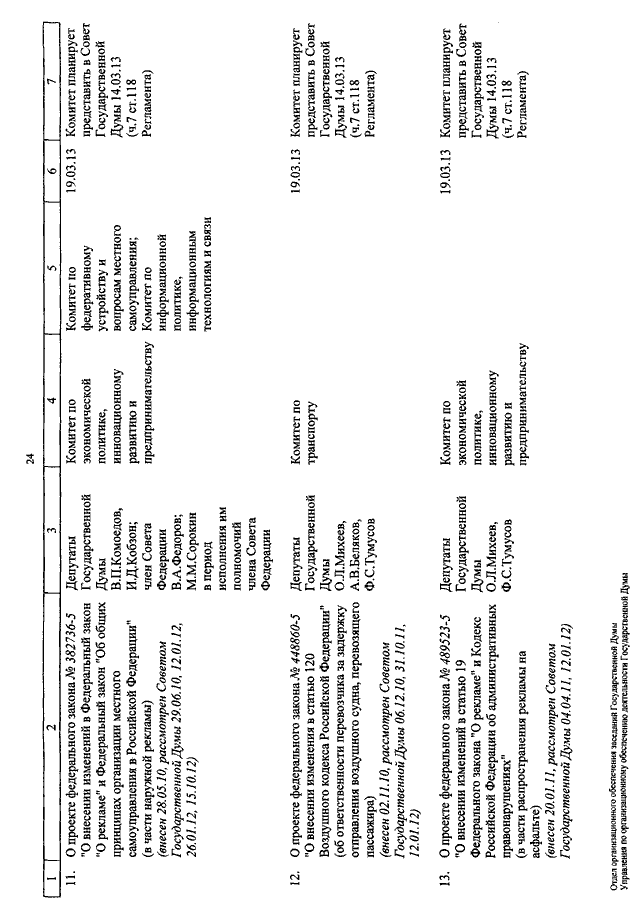 "О КАЛЕНДАРЕ РАССМОТРЕНИЯ ВОПРОСОВ ГОСУДАРСТВЕННОЙ ДУМОЙ С 12 ПО 22 МАРТА 2013 ГОДА"