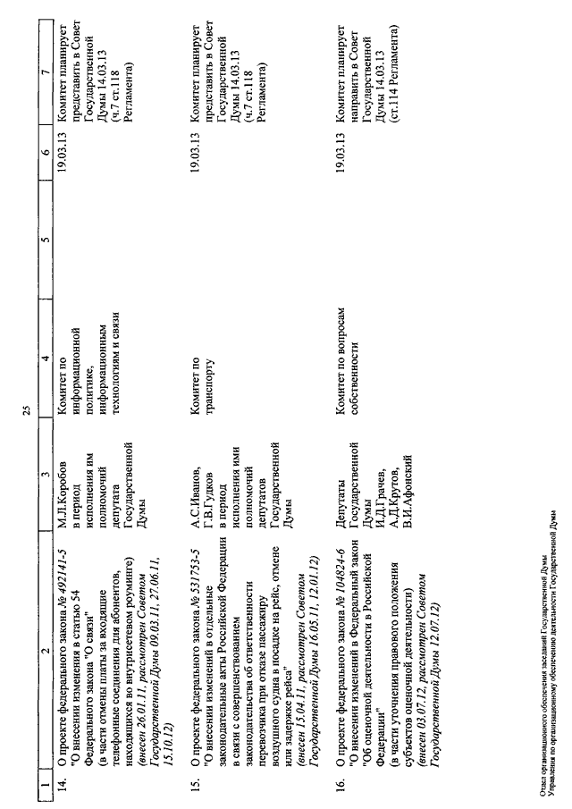 "О КАЛЕНДАРЕ РАССМОТРЕНИЯ ВОПРОСОВ ГОСУДАРСТВЕННОЙ ДУМОЙ С 12 ПО 22 МАРТА 2013 ГОДА"