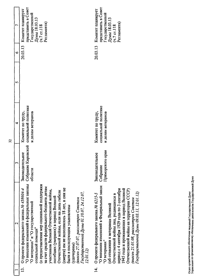 "О КАЛЕНДАРЕ РАССМОТРЕНИЯ ВОПРОСОВ ГОСУДАРСТВЕННОЙ ДУМОЙ С 12 ПО 22 МАРТА 2013 ГОДА"